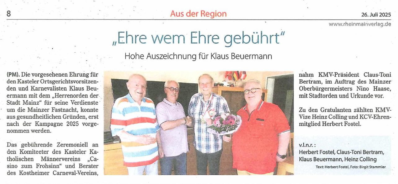 Ehre wem Ehre gebührt - Hohe Auszeichnung für Klaus Beuermann